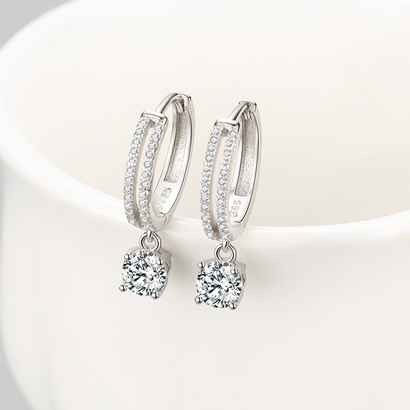 Elegant hoop earrings crafted from genuine S925 sterling silver and finished with a brilliant-cut CZ drop stone for refined sparkle.