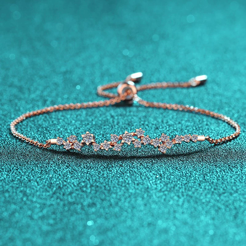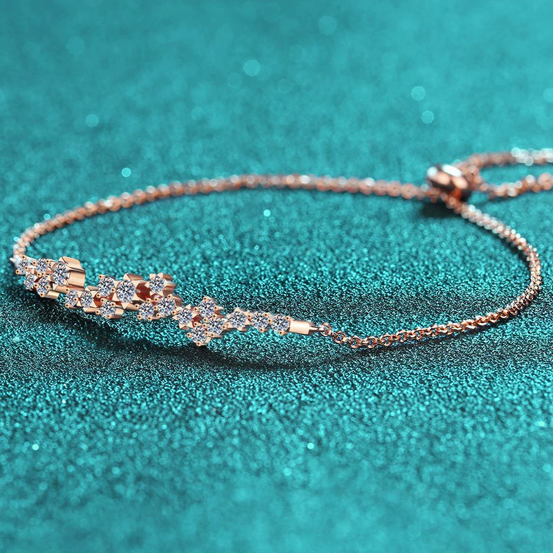 A refined Champagne Moissanite Bracelet crafted in S925 sterling silver with a delicate floral silhouette and adjustable slider for elegant comfort.