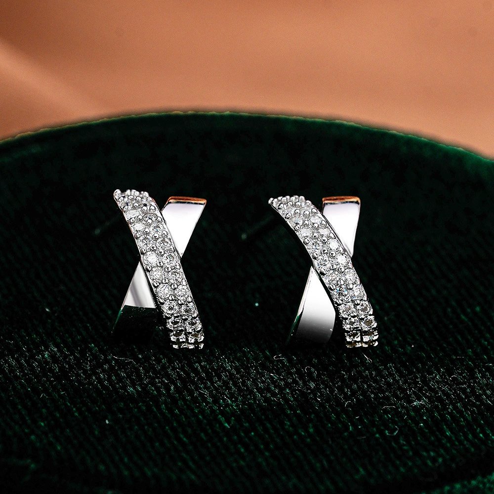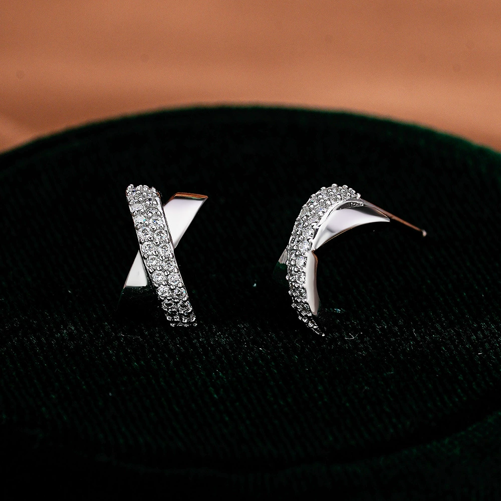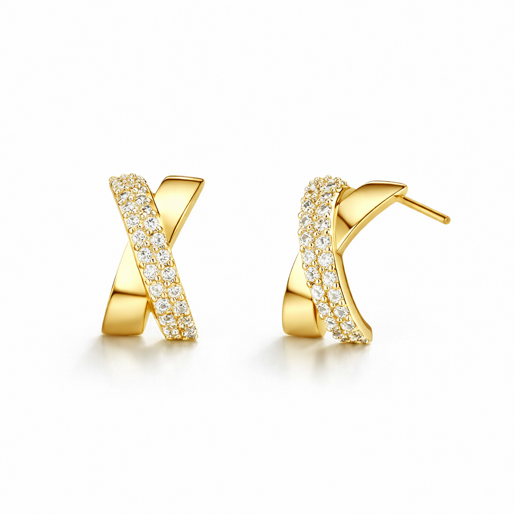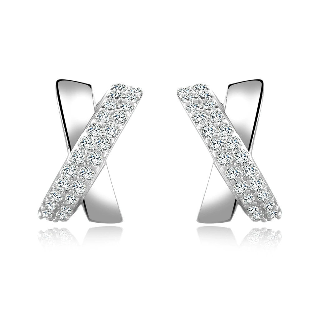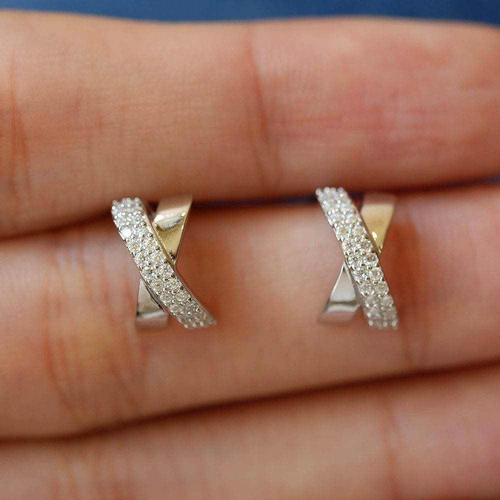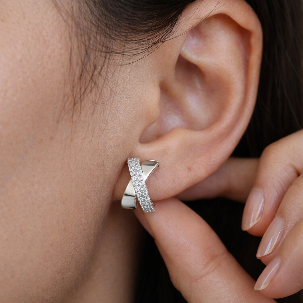 Elegant crossover “X” earrings crafted in S925 sterling silver and set with brilliant D Colour moissanite stones.