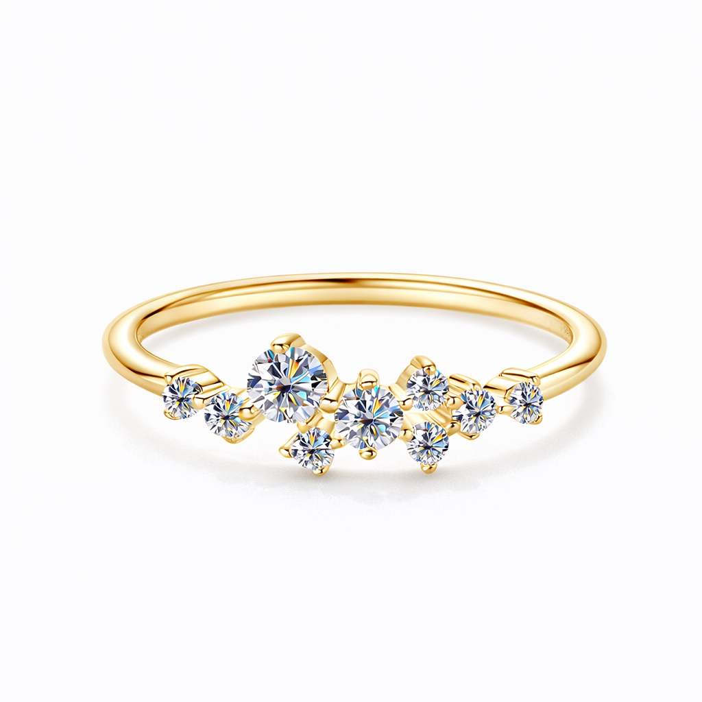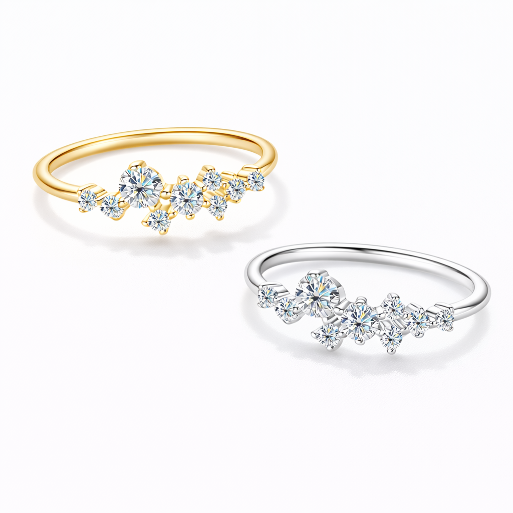 Aoibhín is a dainty moissanite ring inspired by gypsophila blossoms  delicate, luminous and quietly elegant. Crafted from S925 sterling silver with a refined cluster of moissanite stones, it’s designed for daily wear, gifting, and effortless stacking.
