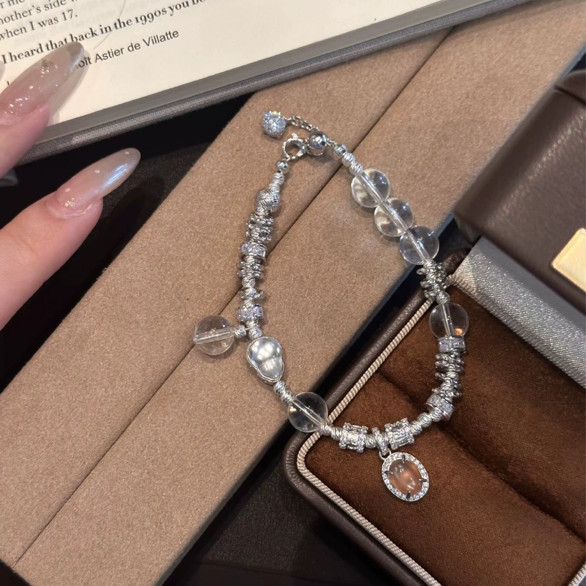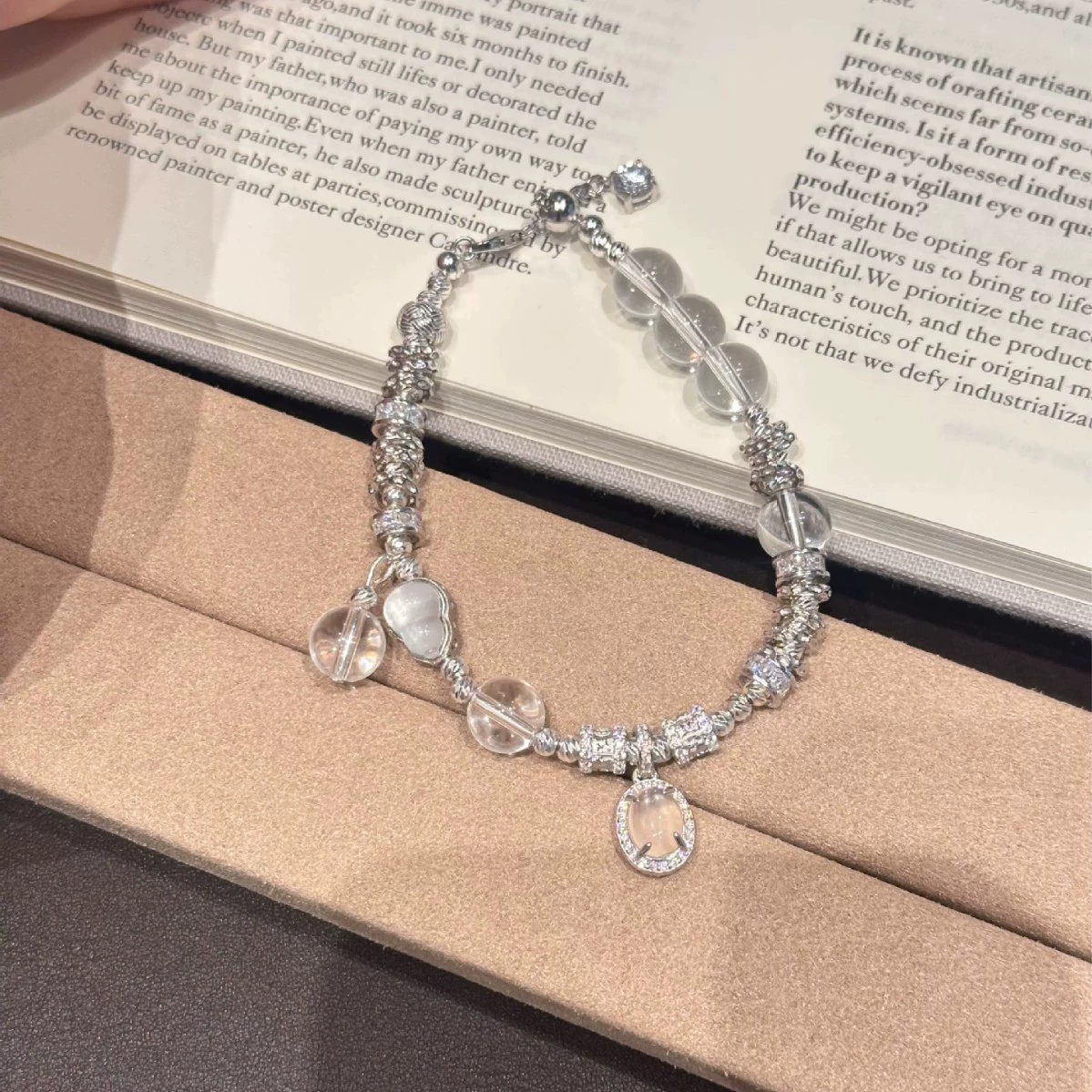 The Dragon Heart Crystal Bracelet is thoughtfully constructed using white crystal elements and sterling silver components to create a balanced, feminine silhouette. The central charm adds depth and texture while maintaining a minimal aesthetic.