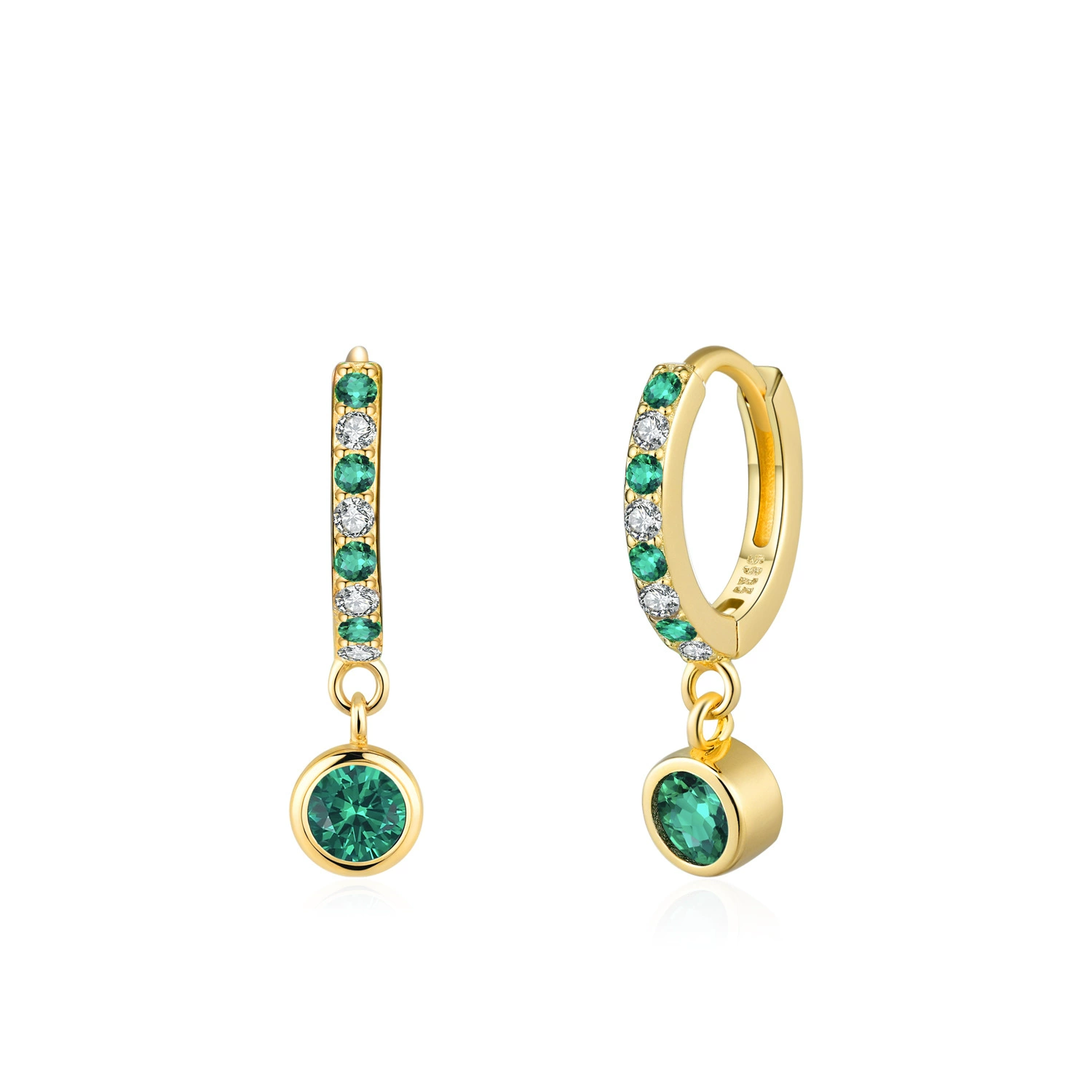 Modern gold zirconia hoop earrings featuring a vibrant bezel-set gemstone accent.