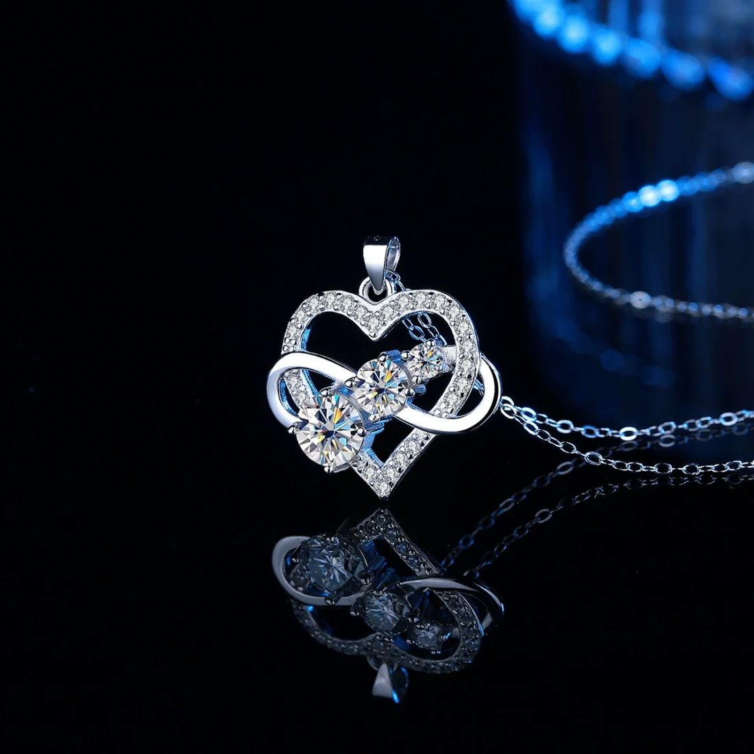 • Design: Infinity loop pendant with heart-inspired centre detail and pavé sparkle accents