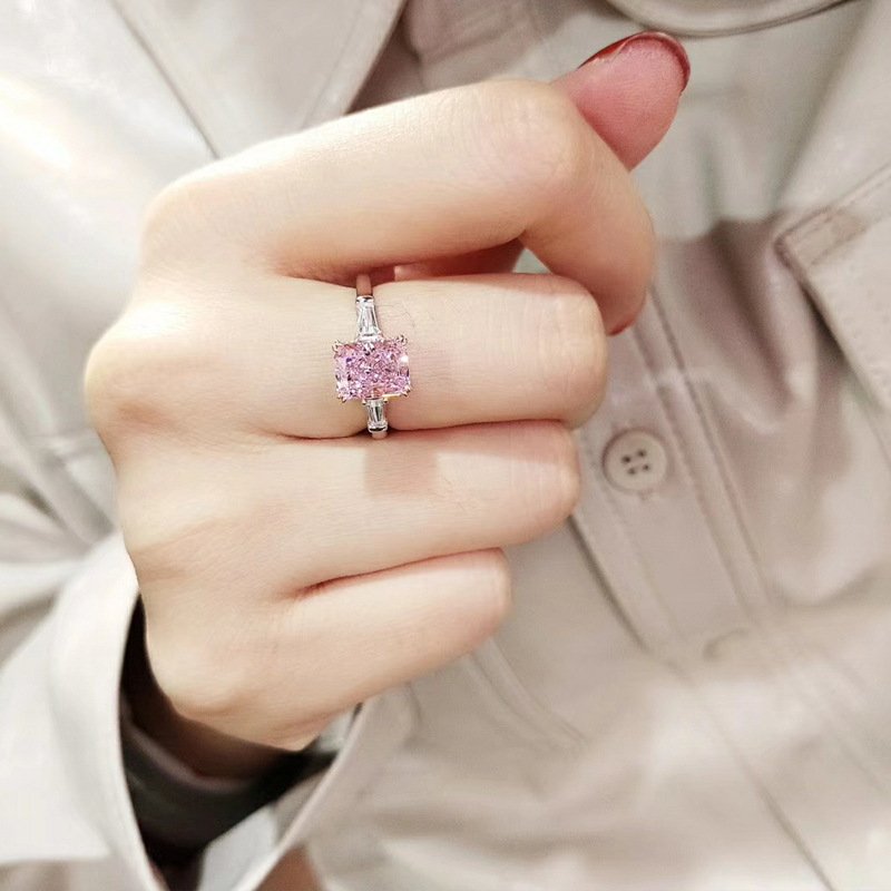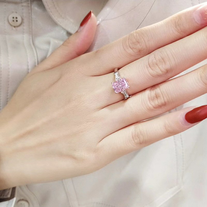 A luminous pink simulated diamond ring designed to look like fine jewellery without the heavy markup. Crafted in S925 sterling silver, with a cushion-cut blush stone and sleek side accents.