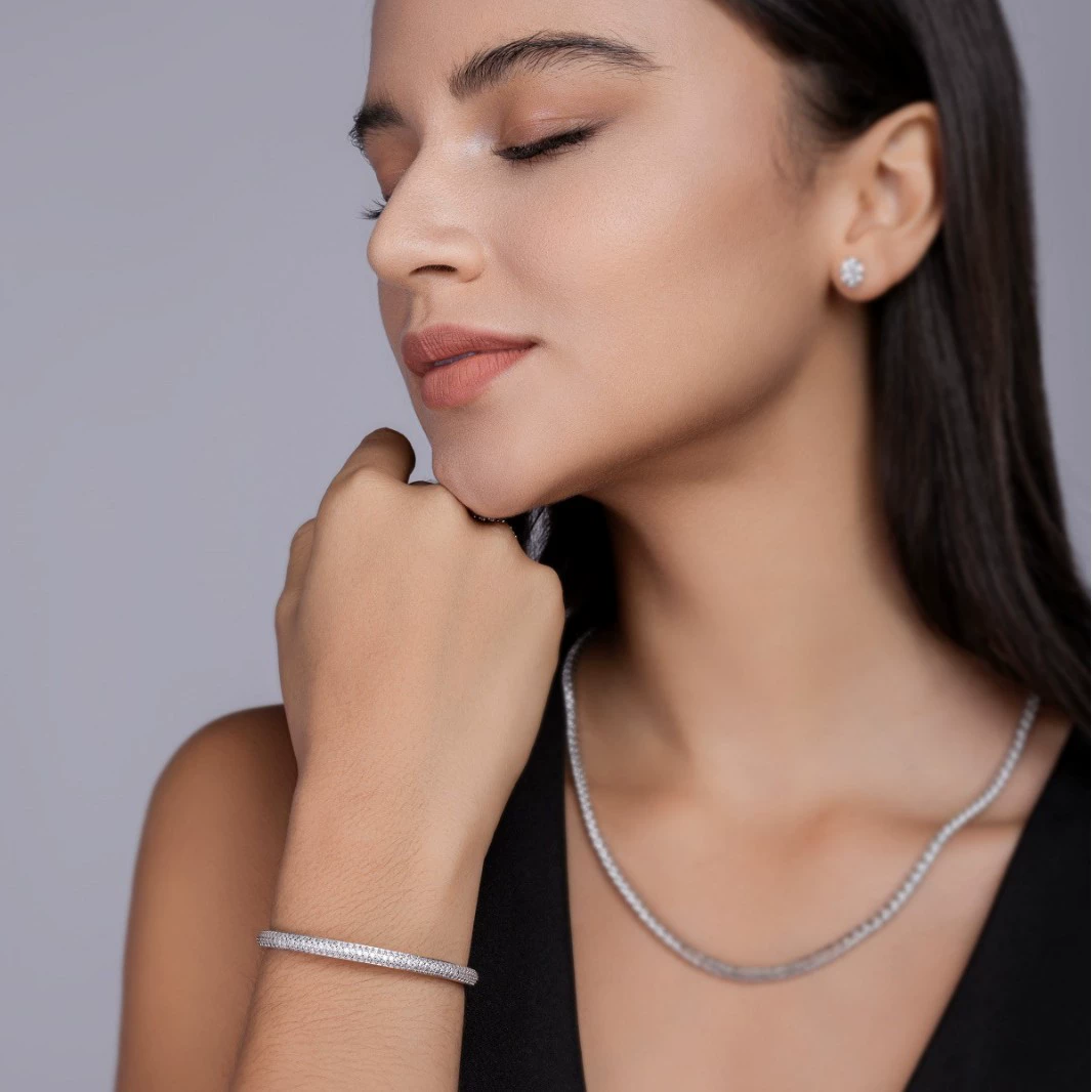A clean, sculpted bangle designed for modern sparkle. The S925 moissanite bangle bracelet features the layout with 145 precision-set stones and an included GRA certificate—a refined, minimalist piece for everyday elegance or elevated gifting.